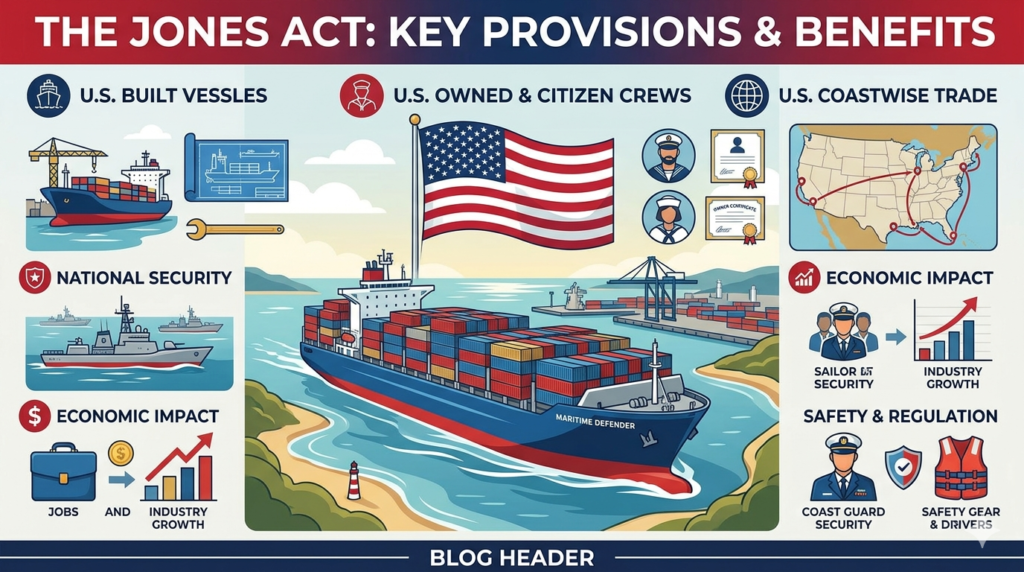 The law was designed to protect the American maritime industry, strengthen national defense, and support domestic trade. While it provides important economic and security benefits, it has also generated debate over shipping costs and market competition.